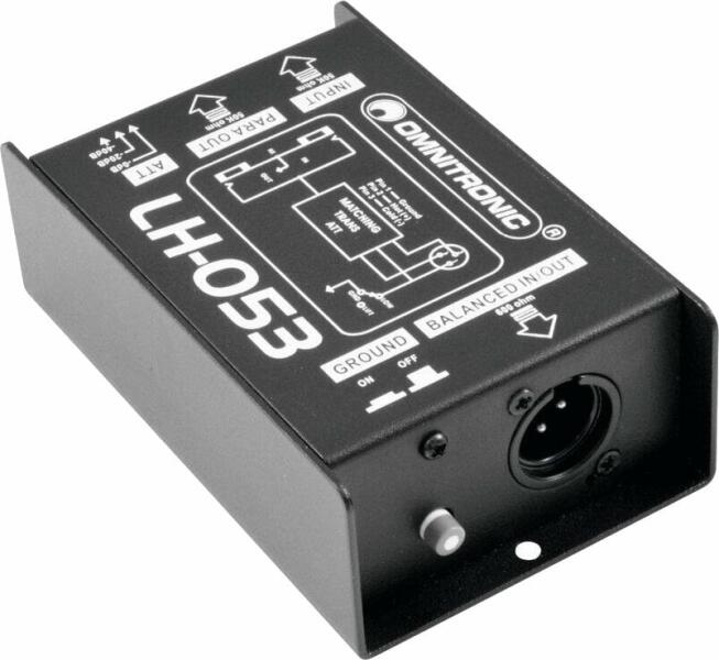 Ez egy automatizált szoftver általi fordítás:Passzív 1 csatornás DI box, fekete. 1 nagy impedanciájú jelbemenet, 6,3 mm-es jack, 1 alacsony impedanciájú XLR kimenet, 1 szerszám átmenő kimenet, 6,3 mm-es jack. A kiegyensúlyozatlan vonali bemenetet (pl. műszerek) szimmetrikus XLR kimenetté alakítja a keverő csatlakoztatásához. Kapcsolható bemeneti csillapítás: 0 dB, -20 dB, -40 dB. A talajemelő kapcsoló kiküszöböli a jelinterferenciát és a földelési problémákat. Tartós fekete fém konstrukció.