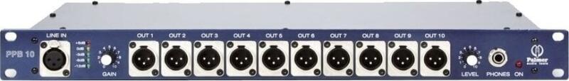 10 csatornás osztó, splitter, két XLR bemenet egy vonal számára, a transzformátor alapon egy bemenet tíz kimenetre oszlik, 6.3 mm Jack, XLR, RCA kimenetek, minden bemenet / kimenet kiegyensúlyozott, szigetelt, mindegyik bemenet külön földeléssel rendelkezik, fejhallgató kimenet saját hangerőszabályozással, kapcsolók: ground lift, input gain, phones level, Power On/Off, ellenálló fém konstrukció, méretek: 480 x 165 x 44,5 mm (19 ''x 1U), súly: 4,18 kg