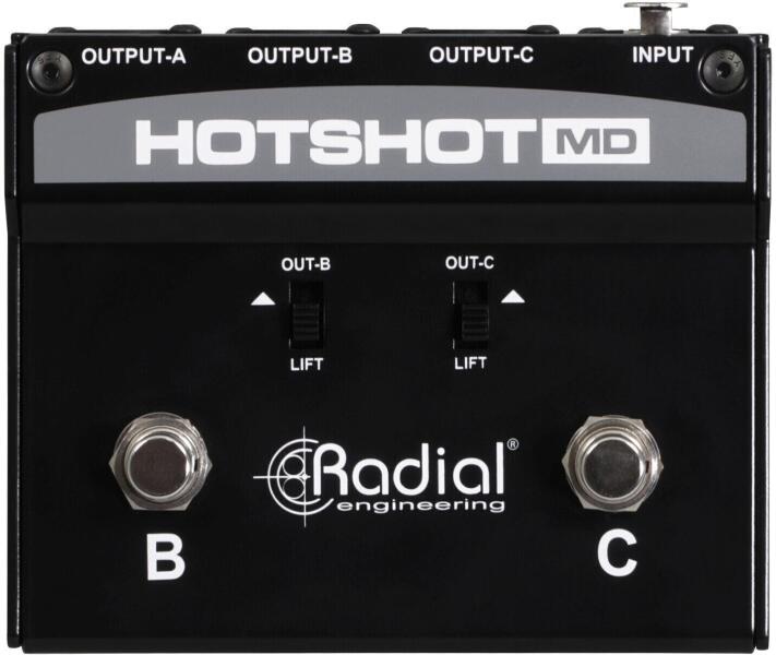 Ez egy automatizált szoftver általi fordítás:Radial HotShot MD egy dinamikus mikrofonokhoz tervezett passzív kapcsoló, két lábbal működtethető kapcsolóval, amelyek lehetővé teszik az előadók számára, hogy mikrofonjelüket ideiglenesen két különálló vagy kombinált célhelyre irányítsák át. Ez az eszköz ideális olyan alkalmazásokhoz, mint a csendes színpadi kommunikáció, a mikrofon némítása olyan pillanatokban, mint a köhögés, vagy effektek hozzáadása egy vokális jelhez. A megfelelő kapcsoló lenyomva tartásával az előadó átirányíthatja a mikrofonjelet különböző kimenetekre, megkönnyítve a diszkrét kommunikációt a zenekarral, a technikai csapattal vagy mindkettővel. A HotShot MD csendes működésre lett tervezve, biztosítva, hogy a fő audiokimenet használaton kívül is érintetlen maradjon.