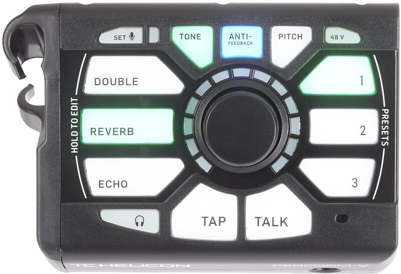 Irányítás: Set, Tone, Anti-Feedback, Pitch, 48V, 1, 2, 3, Talk, Tap, Headphones, Echo, Reverb, Double,