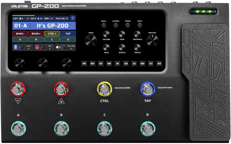 Irányítás: 8x FS, 3x Knob, Para, Master, Volume, Gain, Presence, Bass, Middle, Treble, Back, Global, Drum, Save, Pre, Wah, Dst, Ap, Nr, Cab, EQ, Mod, Dly, Rev, Expression pedal,